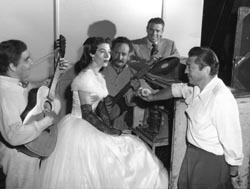 | Vincent with Errol Flynn and Viveca Lindfors filming "Adventures of Don Juan"(1948) |