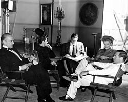 | Script conference on the Warner set of "All Through The Night" Conrad Veidt, Judith Anderson, Vincent, Karen Verne and Peter Lorre.(1942) |
